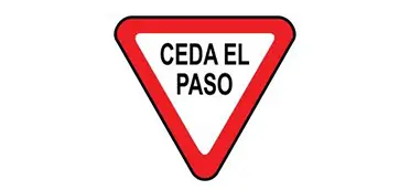 CEDA EL PASO - Demanda ATENCION y significa ceder el paso al vehículo que aparece por la vía transversal, sin necesidad de detener totalmente el coche antes de iniciar el cruce.